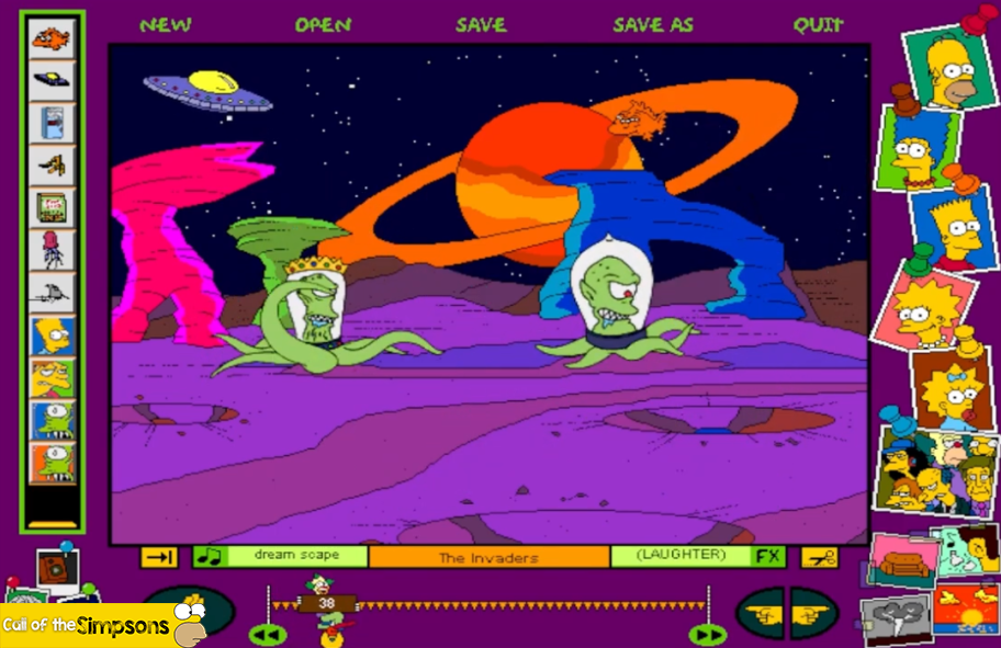 Der Spieler kann verschiedene Figuren aus Springfield verwenden, darunter Homer Simpson, Bart Simpson, Lisa Simpson und viele weitere. Außerdem stehen zahlreiche Hintergründe, Animationen, Geräusche und Musikstücke zur Verfügung, mit denen sich eigene Szenen zusammenstellen lassen. Die Figuren können dabei bewegt, kombiniert und mit Dialogen oder Effekten ergänzt werden.